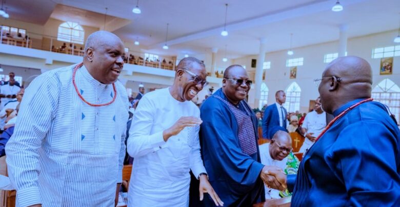 Rt. Hon. Oborevwori made the call at the Funeral Mass of Senator Peter Nwaoboshi held at St. Augustine’s Catholic Church, Ibusa, he maintained that Nigeria’s advancement depends on cooperation, mutual respect, and collective responsibility.